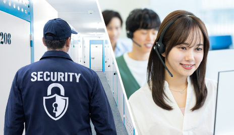 警備会社による24時間体制の警備を導入。建物入口とトランクルームの2重ロックを採用しており、入室には専用キーが必要です。