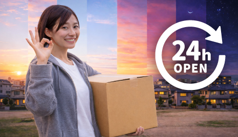 24時間いつでも出入りできるので、早朝や夜間など、お好きな時間に荷物の出し入れが可能です。
